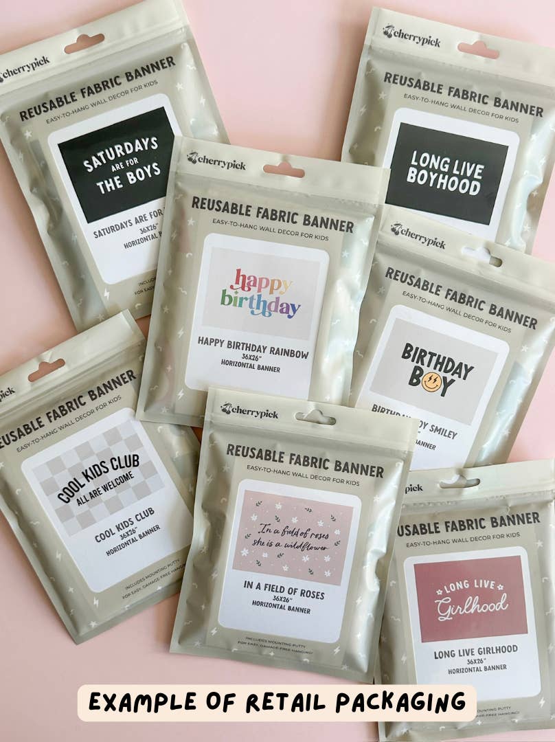 Cherrypick fabric banners are an easy and playful way to decorate with minimal effort! Whether decorating for a special occasion or simply just for fun, our banners add a unique and magical touch.