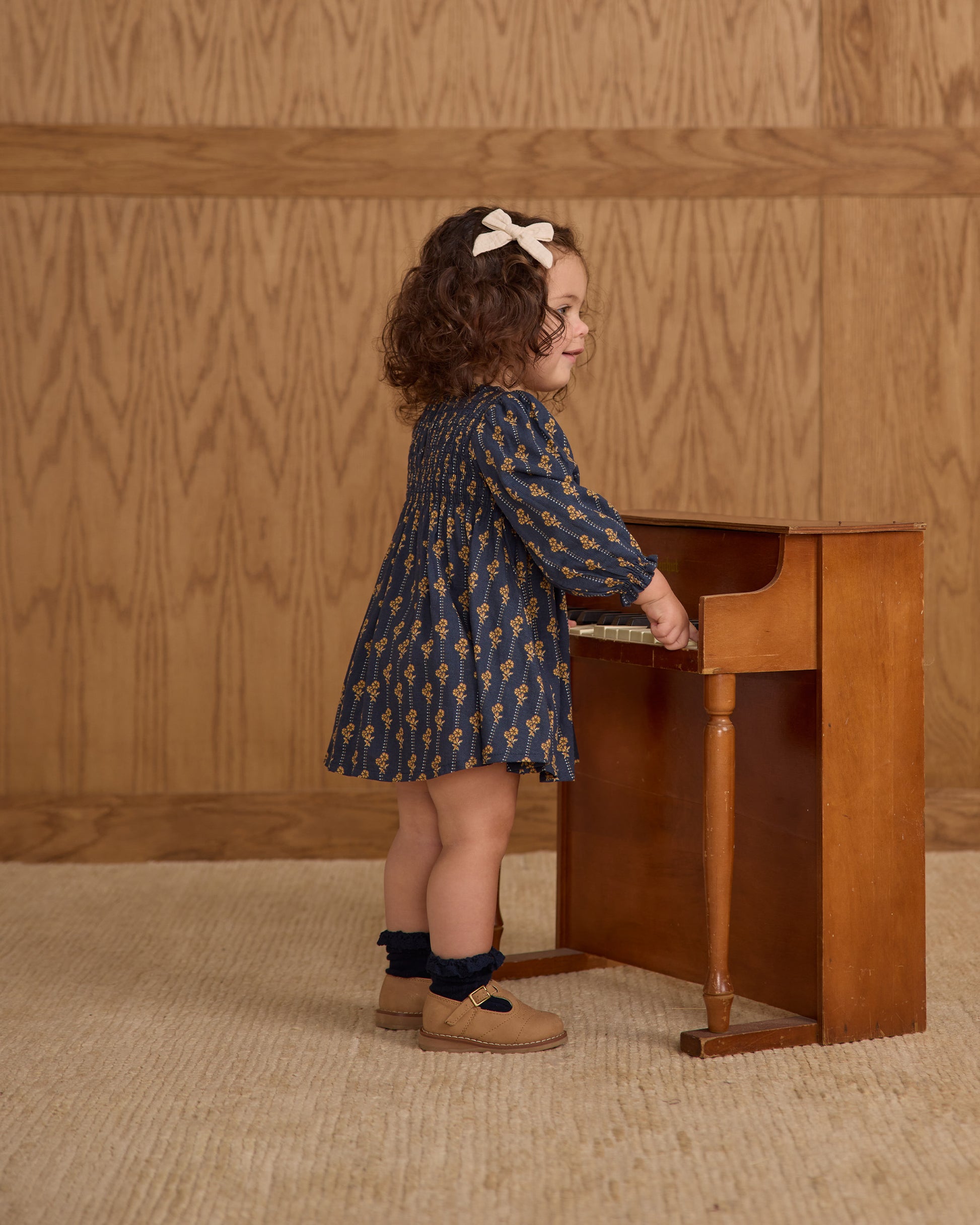 Our long sleeve Capri Dress features a darling smocked bodice and a flowy skirt. Coordinating bloomers included with sizes 0-3M - 18-24M.