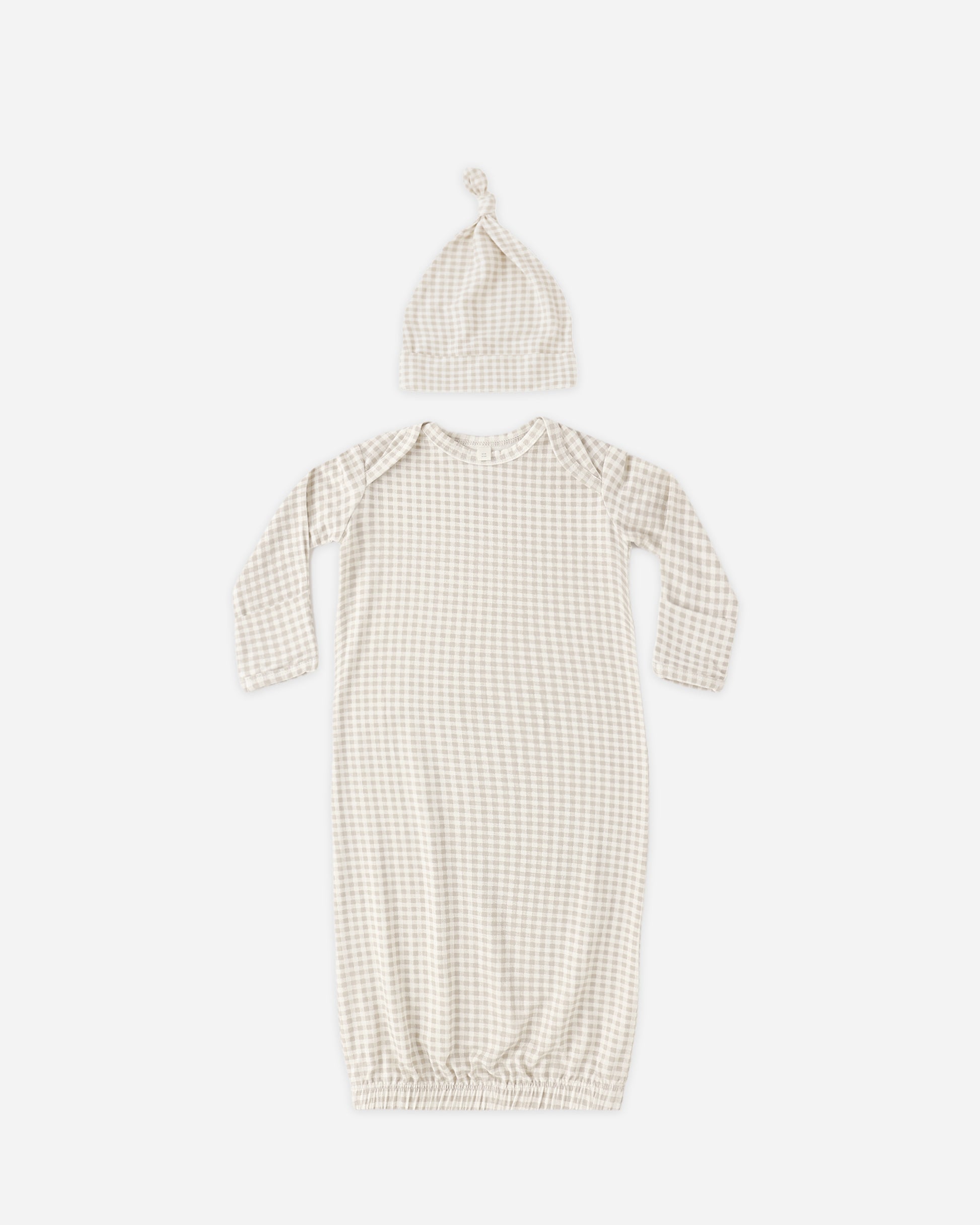 Bamboo Baby Gown + Hat Set || Oat Gingham