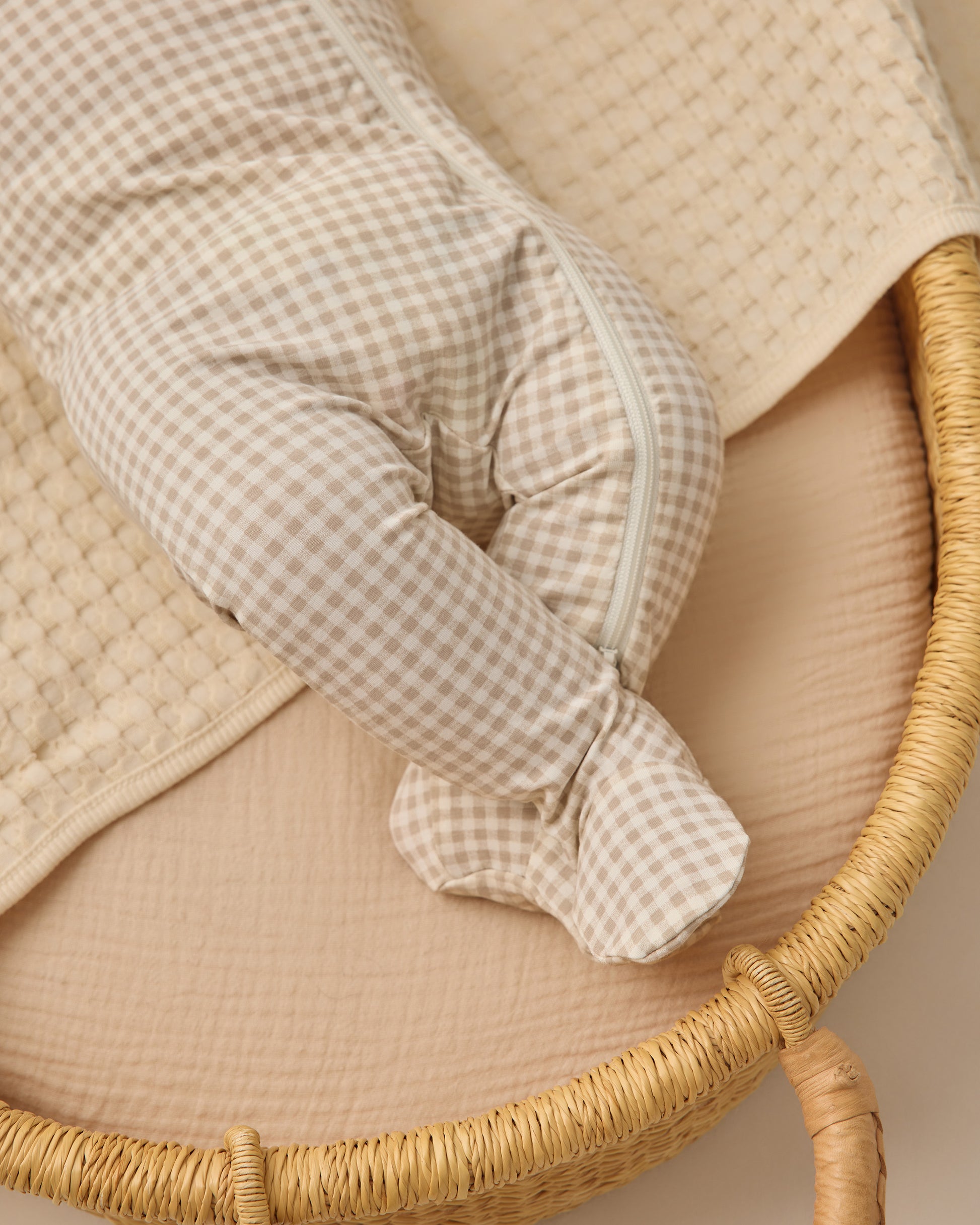 Bamboo Zip Footie || Oat Gingham