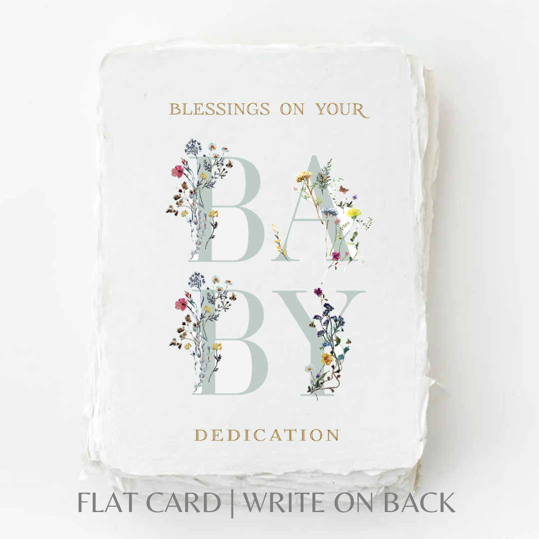Saying: "BLESSINGS ON YOUR BABY DEDICATION"