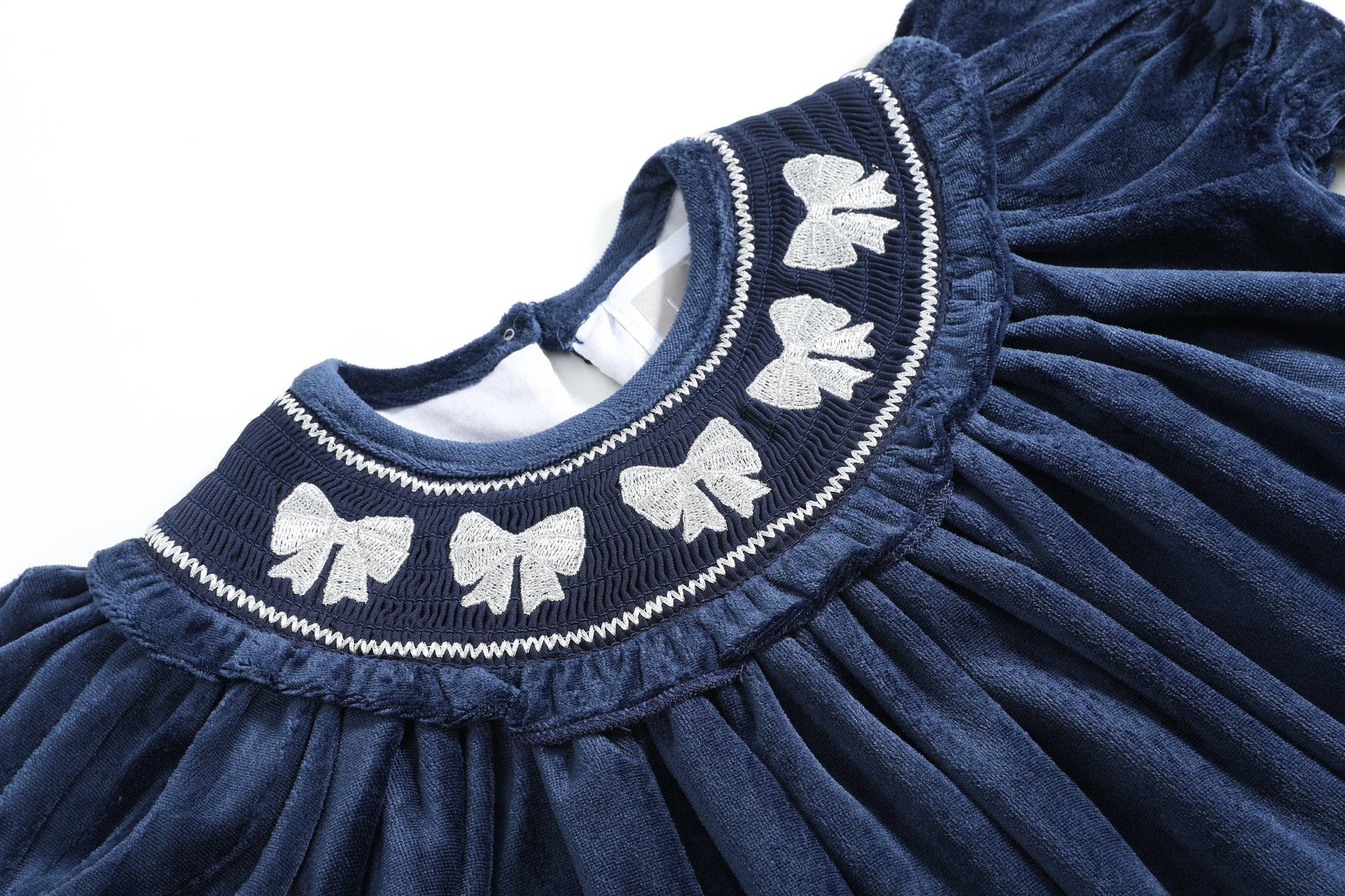 Silver Bows Smocked Ruffle Bishop Dress | Blue Velvet