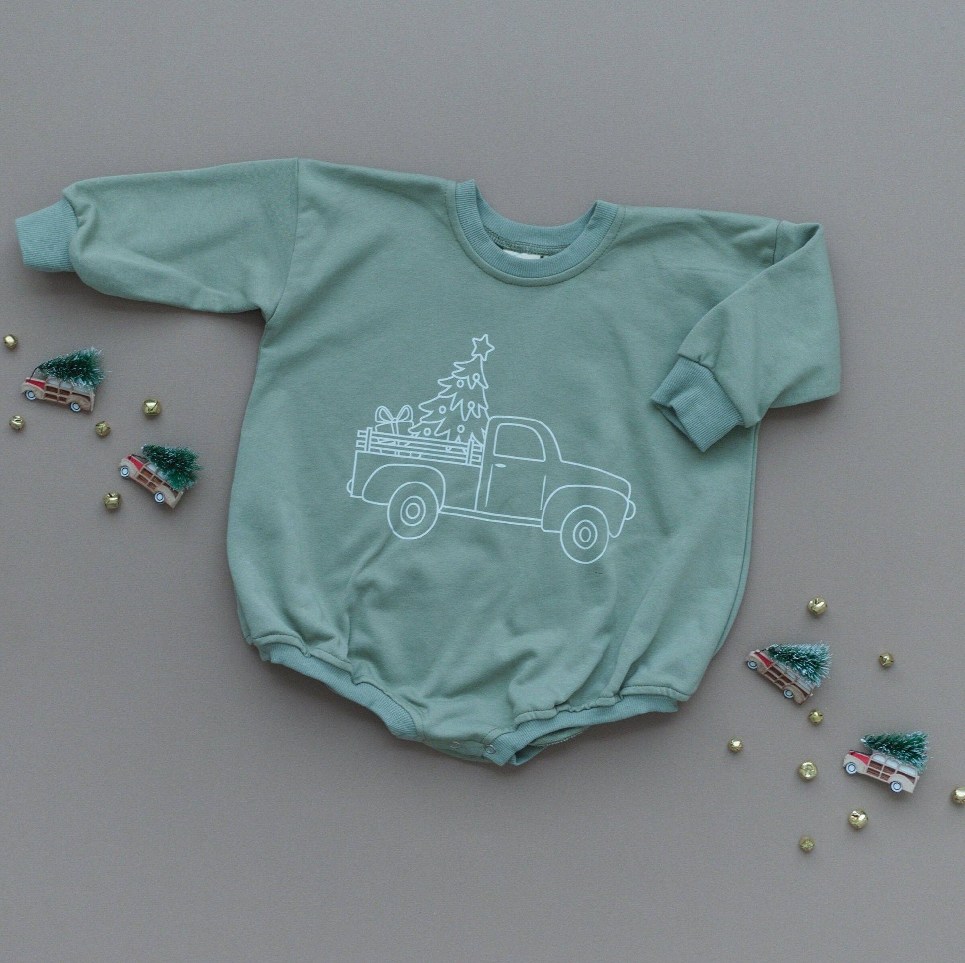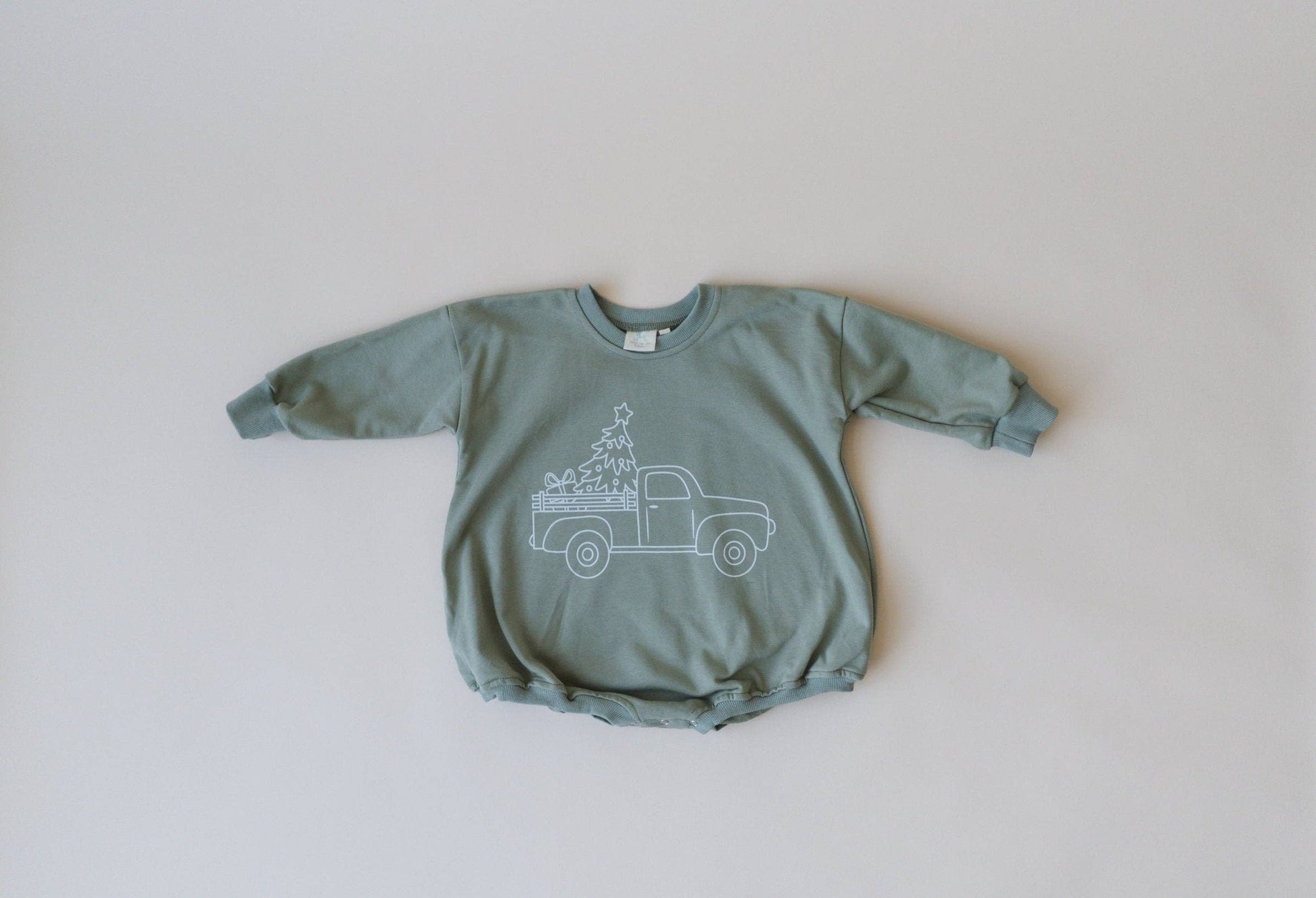 Christmas Tree Truck Oversized Sweatshirt Romper