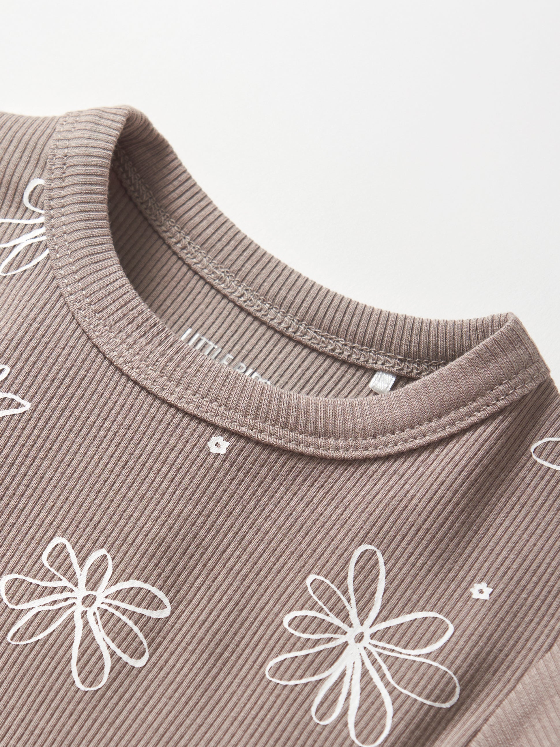 Floral Ribbed Lettuce Trim Tee | Mushroom