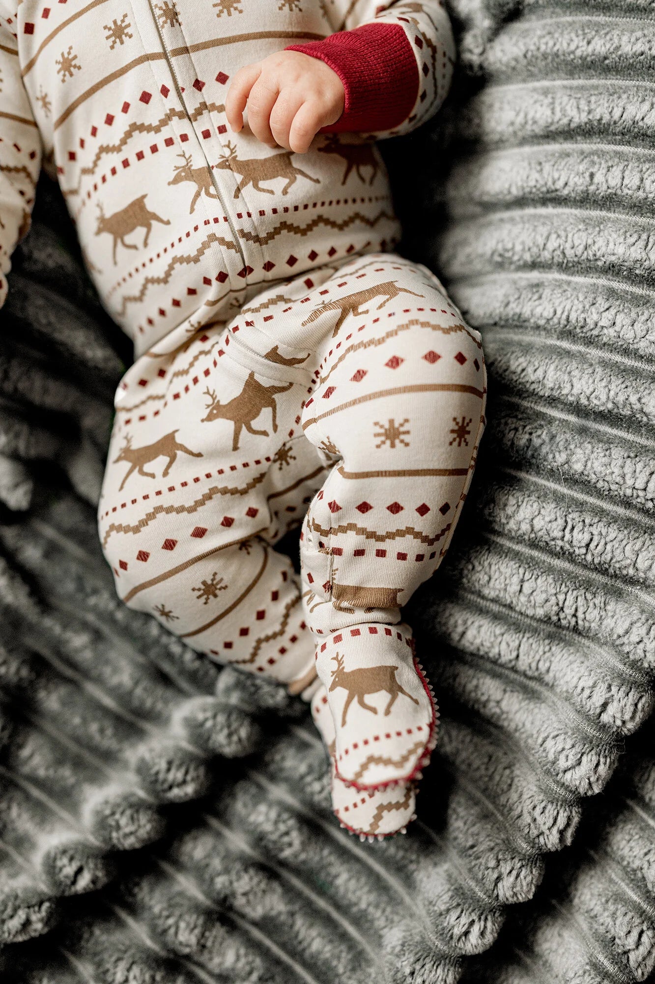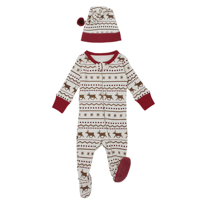 Holiday 2-Way Zipper Footie & Cap Set | Fair Isle Rudolph