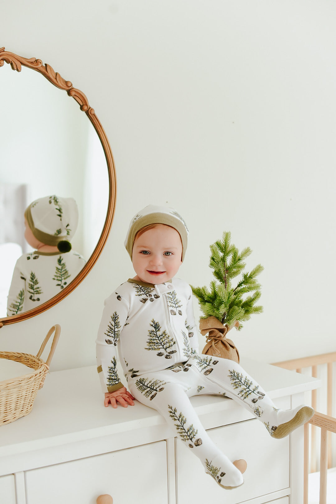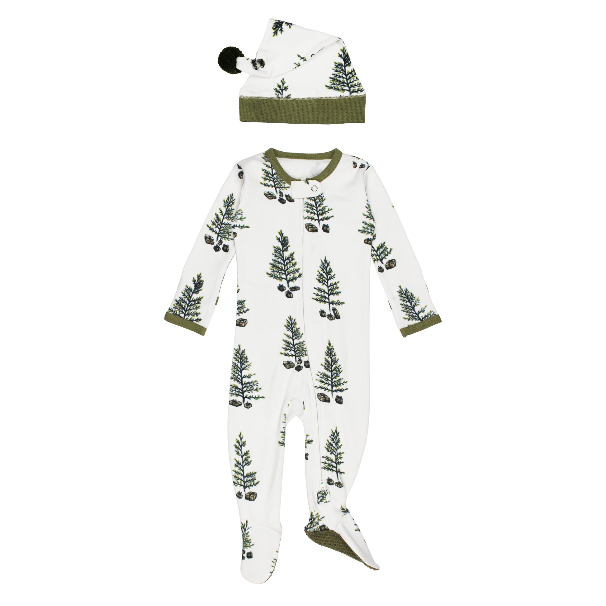 Holiday 2-Way Zipper Footie & Cap Set | Under The Tree