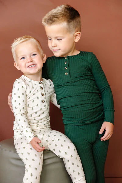 Good things come in pairs and this top + bottoms set is no exception. Made from Lou Lou and Company's signature silky-soft material for a stretchy, comfy fit with functional buttons and fold-over waistband for room to grow (or to wear high-waisted). And say goodbye to socks that slip right off with built-in footies (on the newborn size only) to keep those tiny toes warm without the fuss. Unbelievably sweet mixing & matching approved.