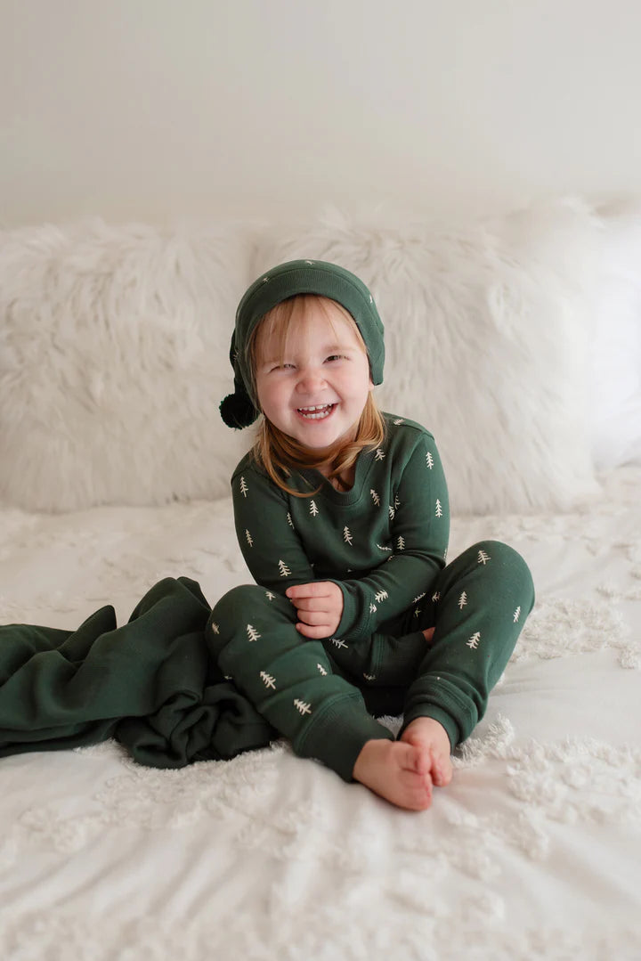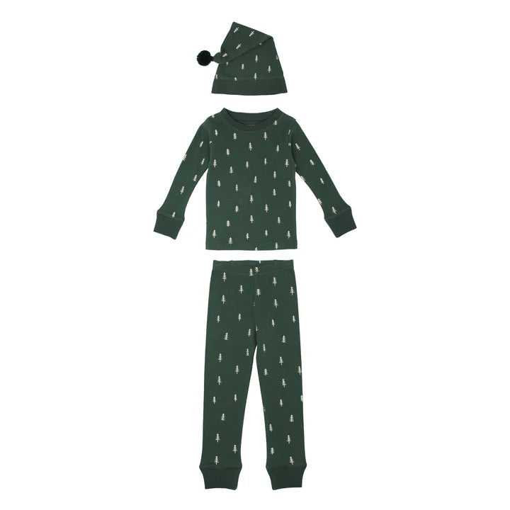 Kids' Organic Holiday PJ & Cap Set | Pine Trees