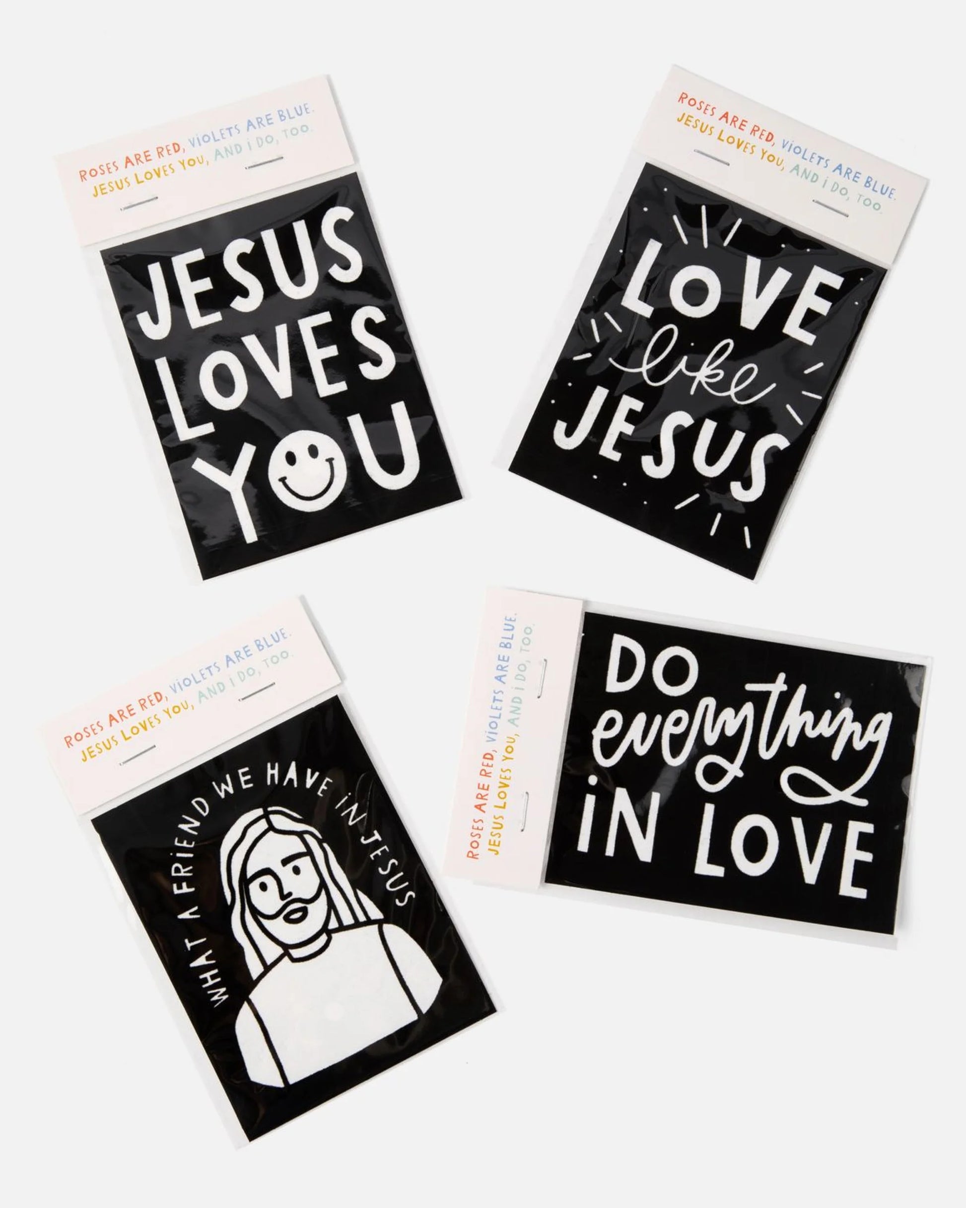 Valentine's Day is all about love and there is no love like the love of Jesus. With a throwback to the 90s fuzzy coloring posters, the Love Like Jesus Valentine Cards come in 4 designs: Jesus Loves You, Love Like Jesus, Do Everything in Love, and What a friend we have in Jesus.