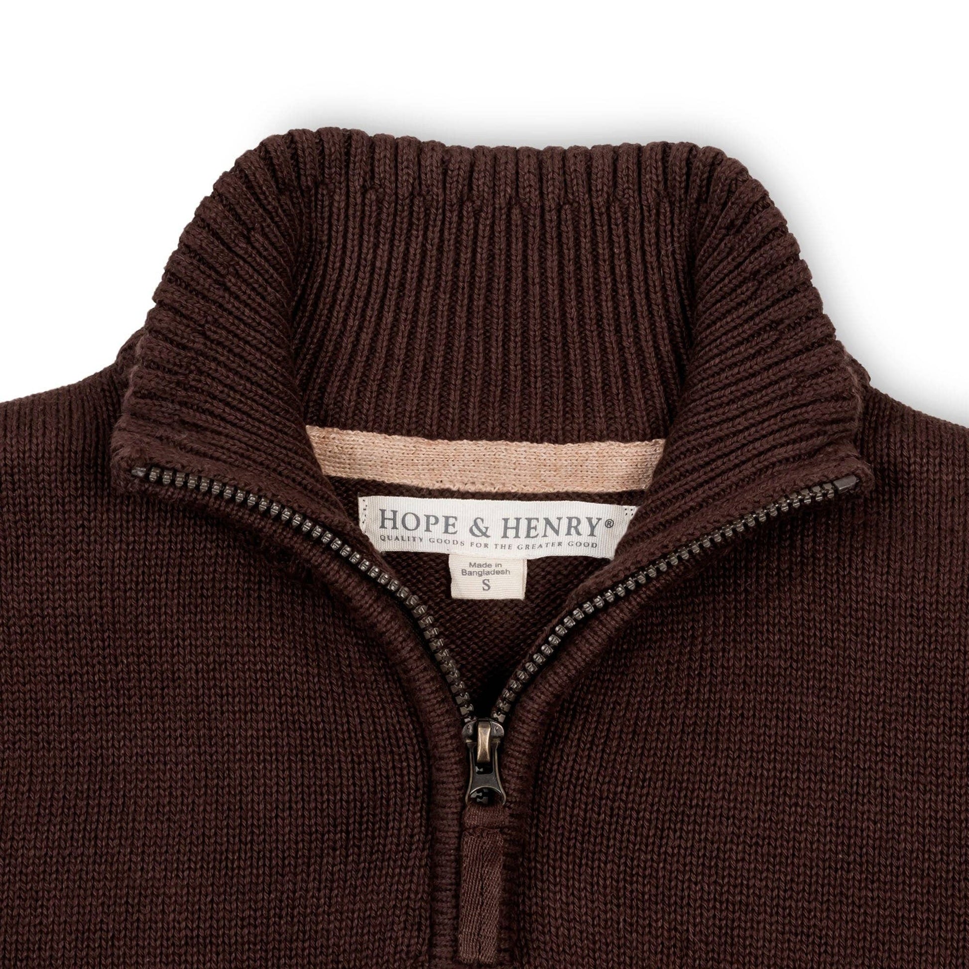 Organic Half Zip Sweater with Elbow Patches | Chocolate