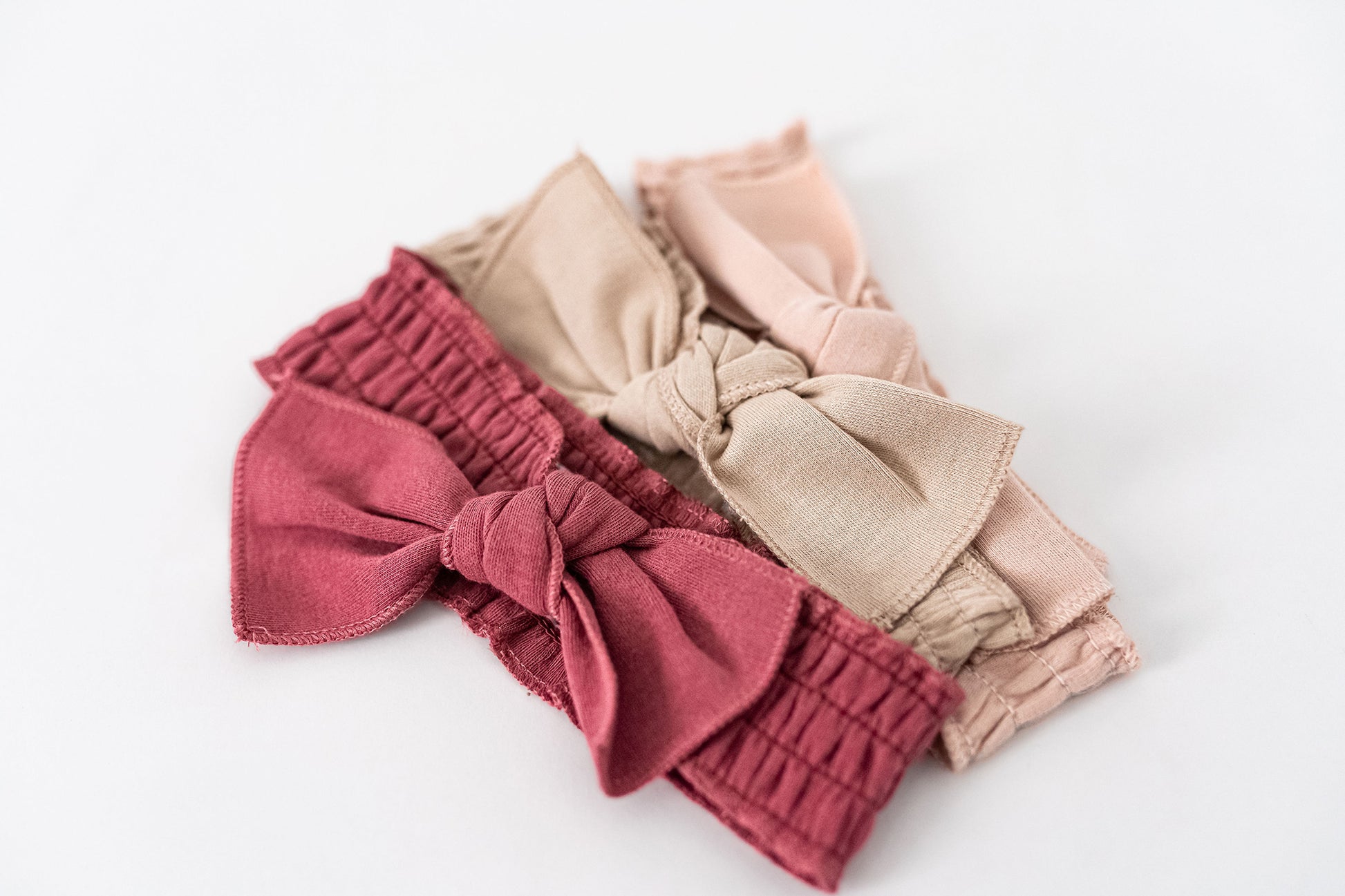 smocked elastic headband with a front bow-tie design