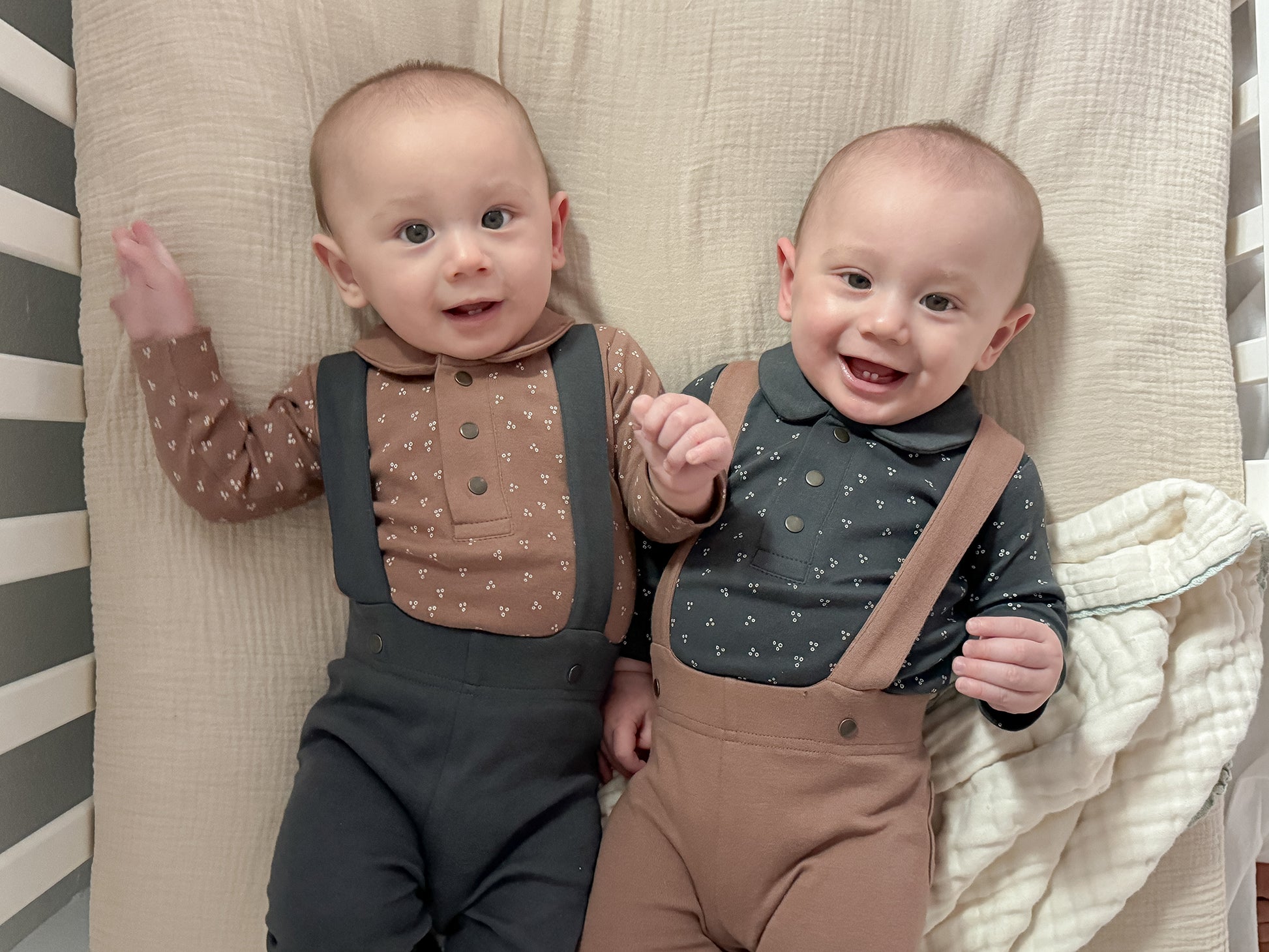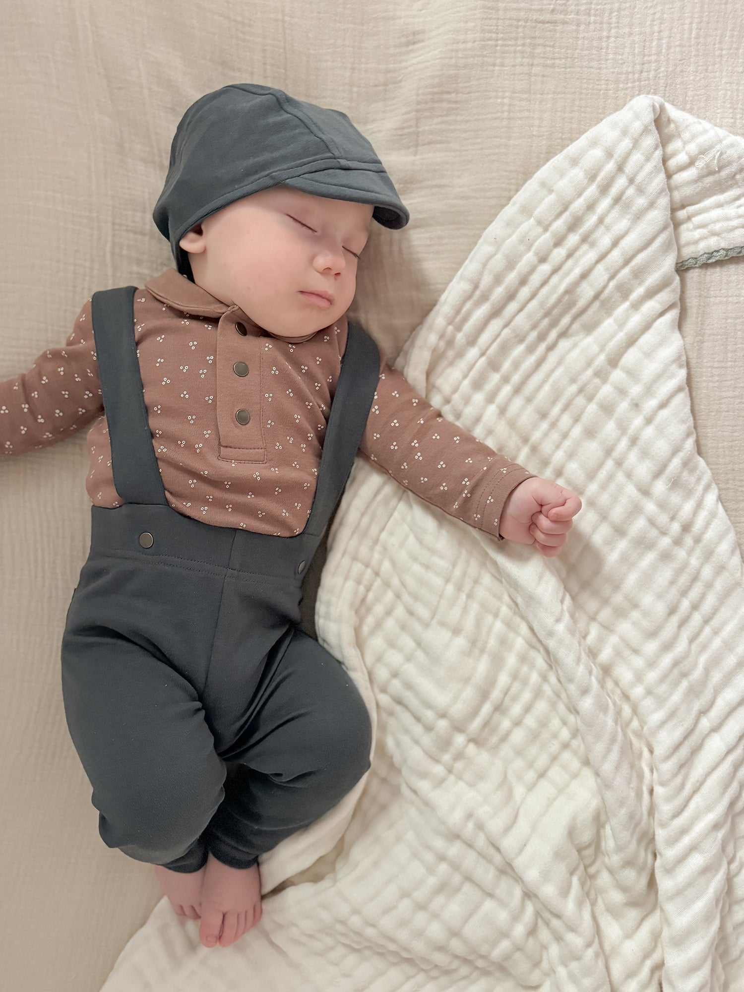 2 decorative brass snaps at front and 2 functional back pockets for added style
