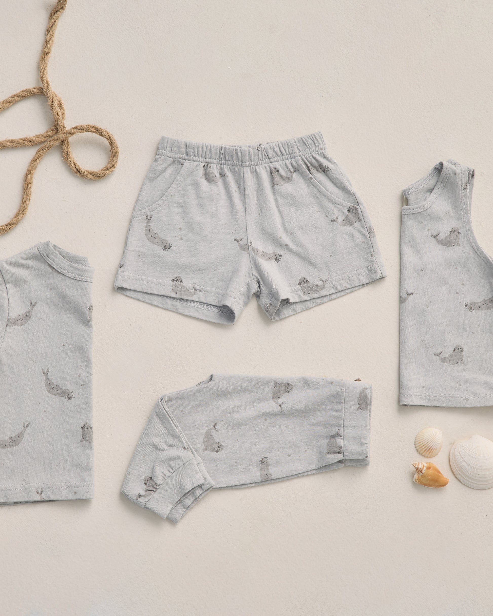 Featuring our 'seals' print on our 'dusty blue' hue.