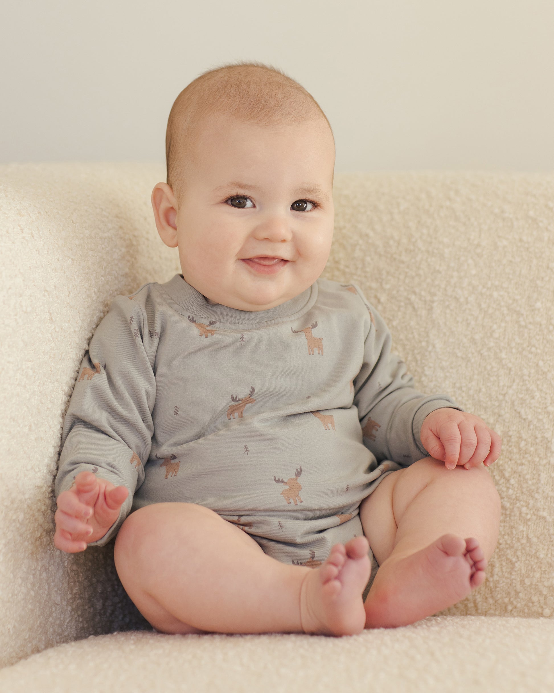 Our Crewneck Bubble Romper, made from soft French terry, is the perfect piece for your little one's transitional wardrobe.