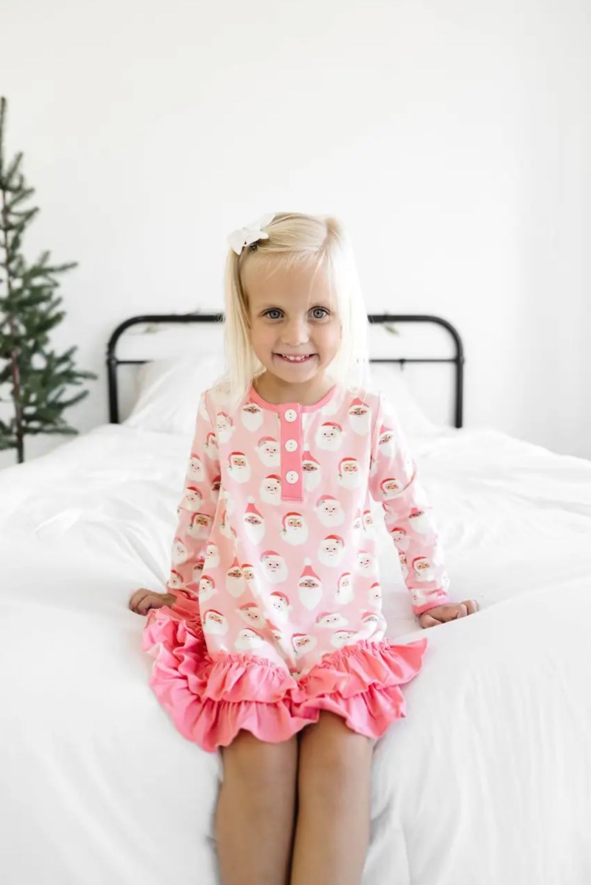 We are so excited to offer our first ever nightgown! Made with the softest fabric that stretches and moves, these lounge dresses are sure to be a hit for the entire family! Our Santa lounge pairs perfectly with our mama pjs for the cutest moment on Christmas Morning.