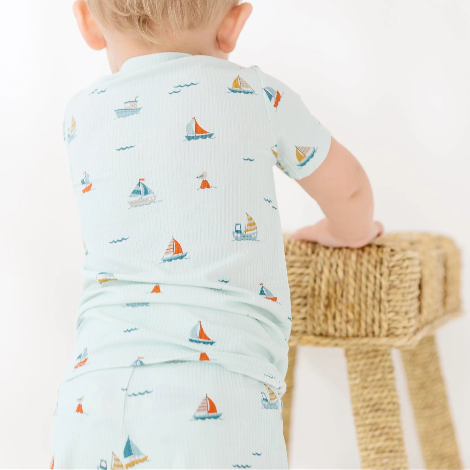Shorts Bamboo Pajama Set | Nautical Boats (Ribbed)