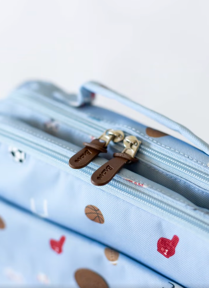 Equipped with two fully insulated main compartments plus an exterior velcro pouch and an interior mesh pocket for ice packs. They are made of moisture-wicking polyester and are built to last. Every purchase helps provide over 550 meals a month to children in Rwanda, Africa.