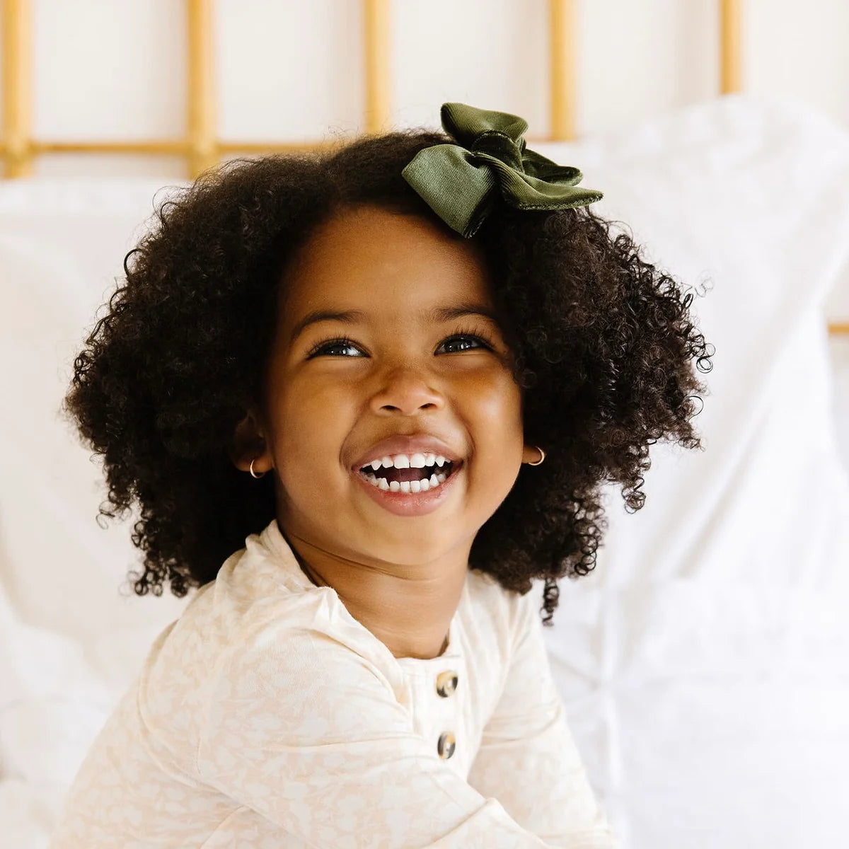 Our Velvet Bow is soft, plush, and polished. Made from luxe velvet with a beautiful sheen, it adds effortless elegance to any outfit—lightweight and gentle for newborns and toddlers, perfect for every day or special moments