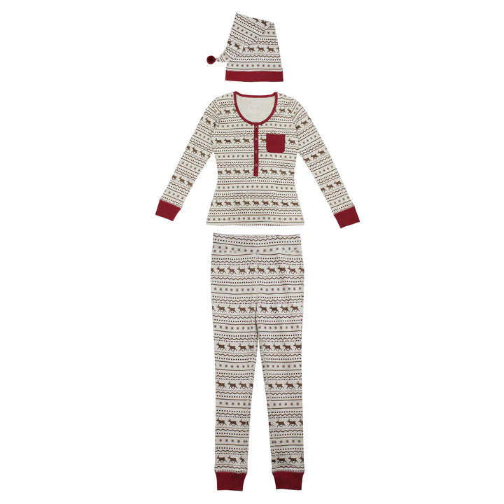 Women's Organic Holiday 2-Pc Lounge Set with Cap | Fair Isle Rudolph